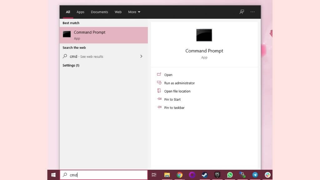 - Aperto menu iniziale E digita CMD. quindi seleziona Prompt dei comandi.