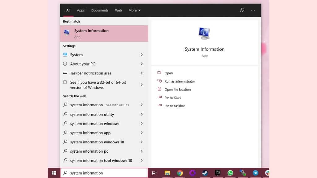 - Aperto menu iniziale E digita Informazioni di sistema.