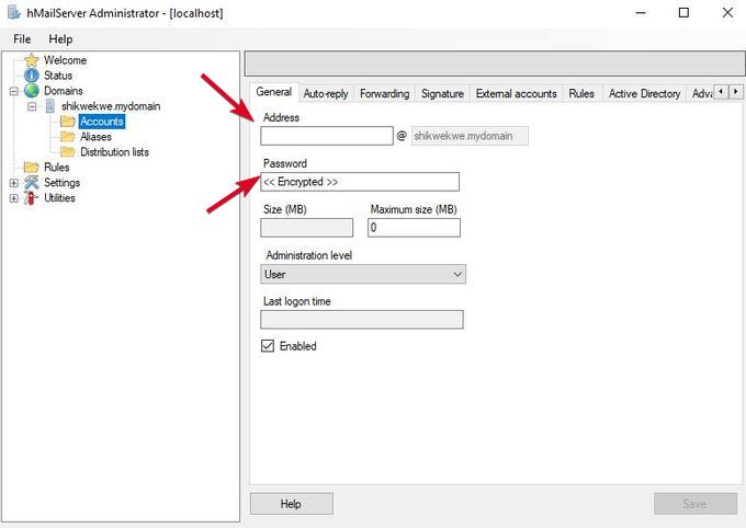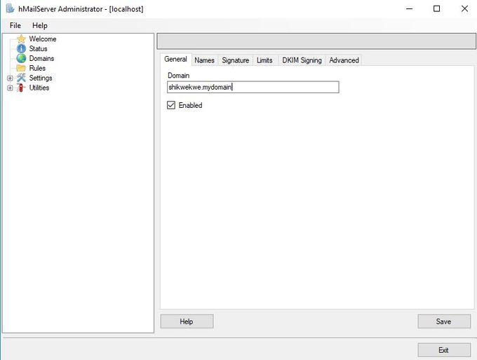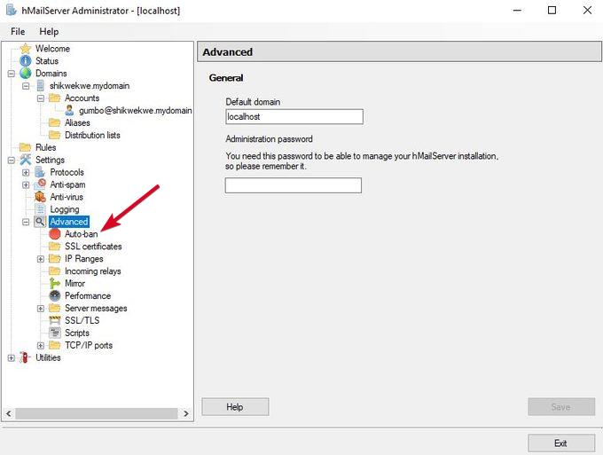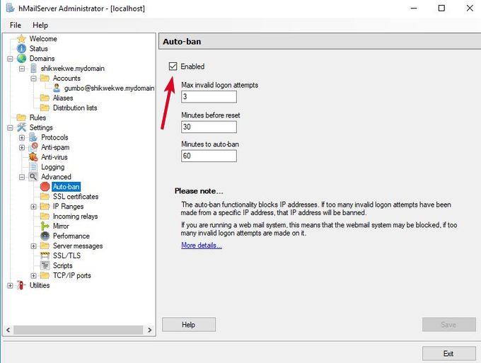- Abilita varie opzioni come l'inoltro, la risposta automatica, le blacklist DNS e altre in hMailServer.
