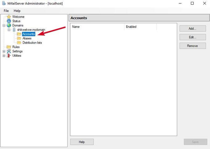 - Nel riquadro destro, fare clic su Domini>Account.