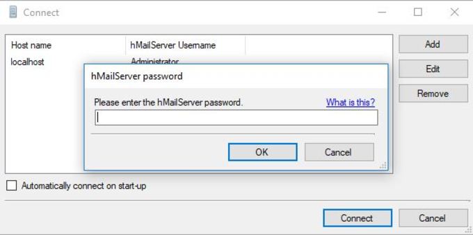 - Si aprirà la finestra di amministrazione di hMailServer. Fare clic su Connettere.