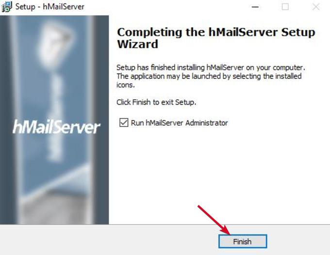 - Una volta terminato, assicurati di selezionare la casella. Esegui hMailServer Administrator وانقر mp Fine.